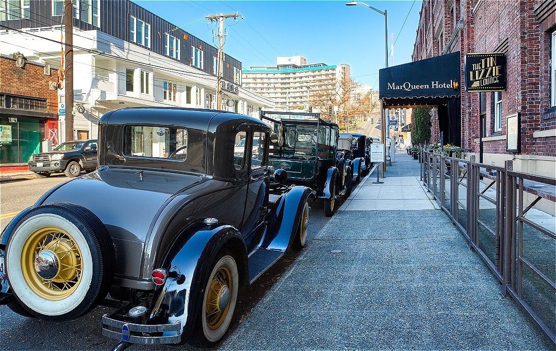 Pair your stay at the iconic MarQueen Hotel with accessible amenities for the ultimate Seattle experience. From the European-style lobby with a grand staircase to a speakeasy-style restaurant and bar, The Tin Lizzie Lounge, our historic hotel begs to be explored. Your home away from home in this storied neighborhood offers a host of on-site services to enhance your Emerald City escape. Our hotel is three stories and does not have an elevator, please visit our Accessibility page for more information on our first-floor accessible rooms.